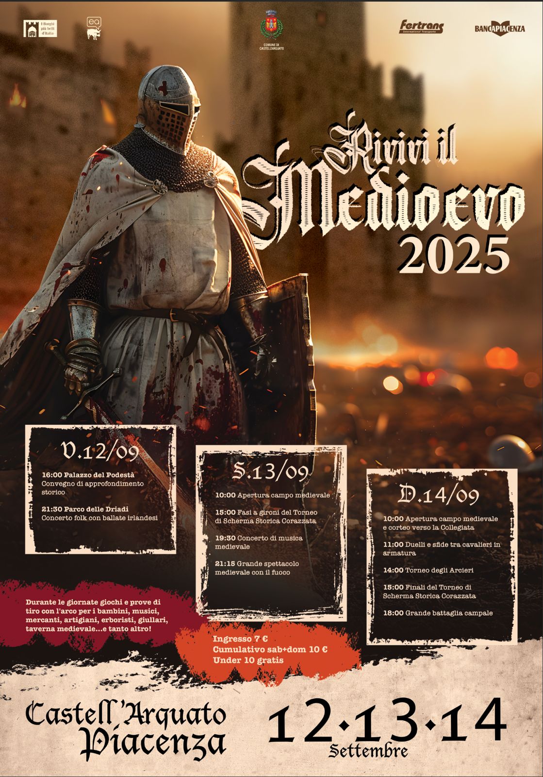 Non perdere il grande spettacolo serale di sabato 13 settembre, che accenderà il campo medievale con musica, esibizioni e sensazionali spettacoli di fuoco.